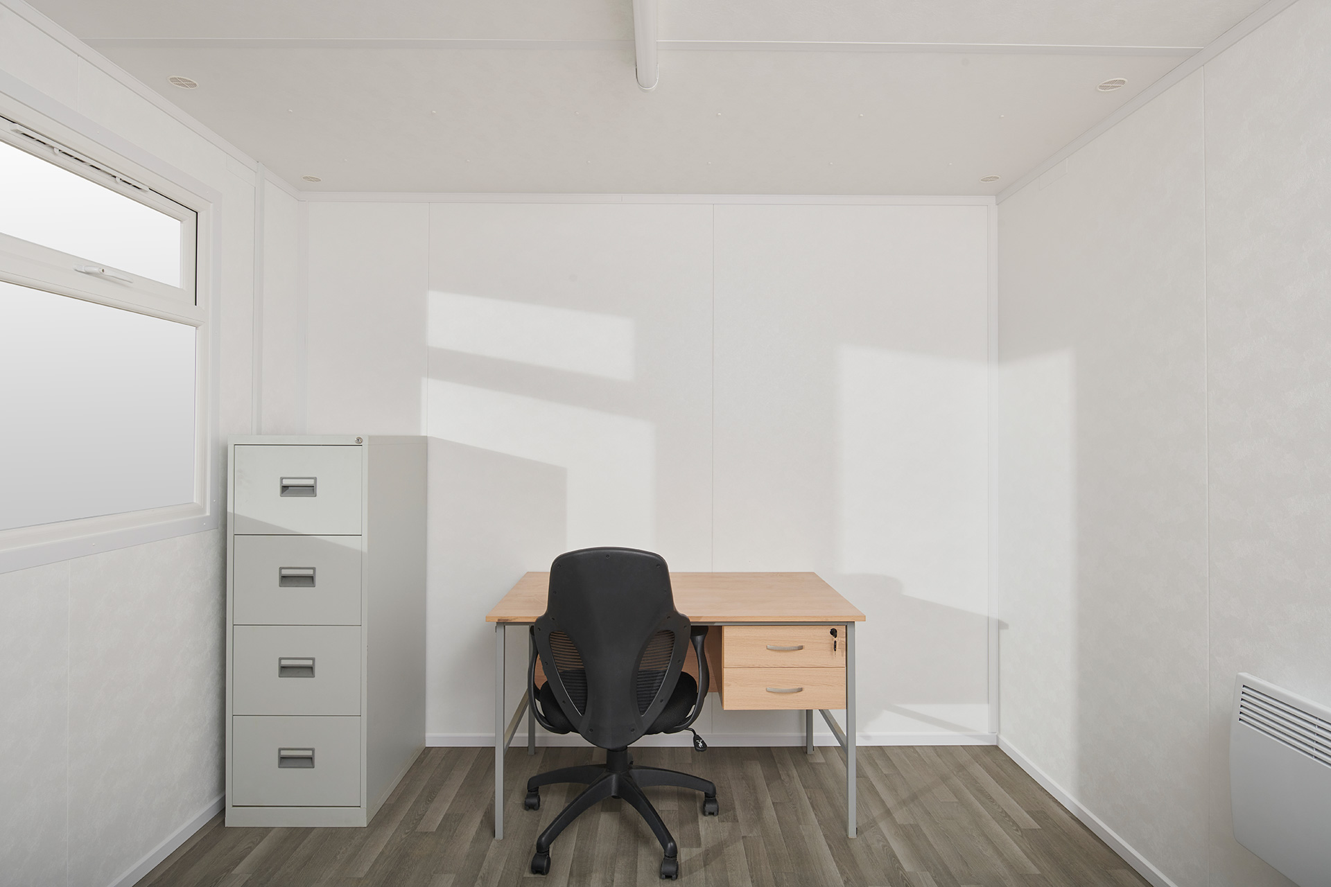 This 12ft Jackleg cabin is suitable for 1 person with a large desk or 2 people with small desks.