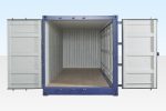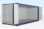 The full 20ft side of the container opens up and items can be loaded by hand or by forklift as required. The design also includes a standard set of container doors at one end.