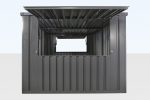 Powder coated in grey (RAL7015) makes the store ideal for discreet use especially if it’s being used at home in the garden, in parks, nature reserves, the countryside or on sports fields. With all the usual benefits of the flat pack storage range notably that the individual components can be moved by hand and erected behind or even within buildings and exhibition halls. Please note that the flat packs stores in the XL range need up to 6 people to move the larger components including the floor and roof.